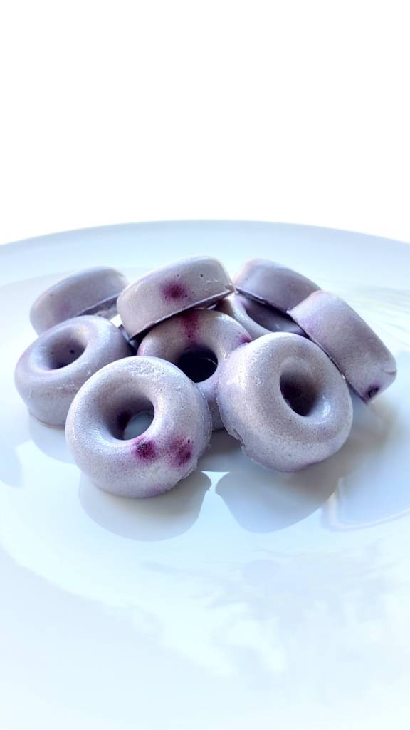 Met dit warme weer is een wat koeler snackje ook wel erg lekker voor de honden. Dus vanmorgen weer even lekker bezig geweest en mijn nieuwe siliconen mini donutmat uitgeprobeerd.