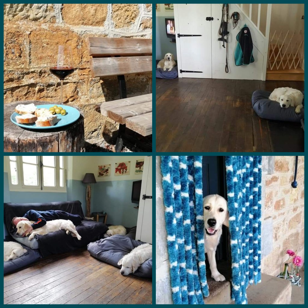 Veel hoeven we niet uit te pakken, want voor de honden is bijna alles er al, van hondenkussens en speeltjes, tot voerbakken en handdoeken, erg fijn helemaal als je meerdere honden hebt. Wat ook erg plezierig is, is dat Miranda ook vlees en lekkere natuurlijke snacks voor de honden heeft, dus mocht je je honden vlees geven zou je dit niet te hoeven meenemen. Binnen kun je allerlei handige en leuke informatie vinden, waar is de supermarkt, wat is er te doen in de omgeving etc… En mocht je een dagje zonder honden op stap willen: Miranda een fantastische honden oppas. Zo zijn wij een dagje zonder onze dames naar Rocamadour geweest en heeft Miranda op ze gepast. Ik kan me nog herinneren dat ik als de overbezorgde hondenmama die ik ben, Miranda nog een berichtje had gestuurd over hoe het met onze roedel ging. Ik kreeg al snel een antwoord met een foto van een iewat smerige Blossom, die het overduidelijk erg naar haar zin had samen met een filmpje van een blije Hayley en slapende Doenja. Ik heb me de rest van de dag niet meer druk gemaakt of zorgen gehad en heb echt heerlijk van ons dagje uit kunnen genieten.