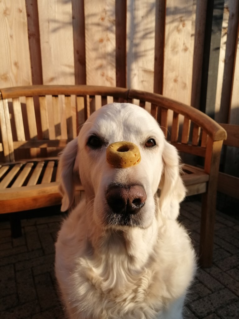 Onze Hayley is onze eerste golden retriever en ze is echt gek op eten. Ze doet er echt alles voor en haalt alle trucjes uit de kast om wat lekkers te krijgen. Hayley vond deze donut zo lekker dat ik ze naar haar heb vernoemd.